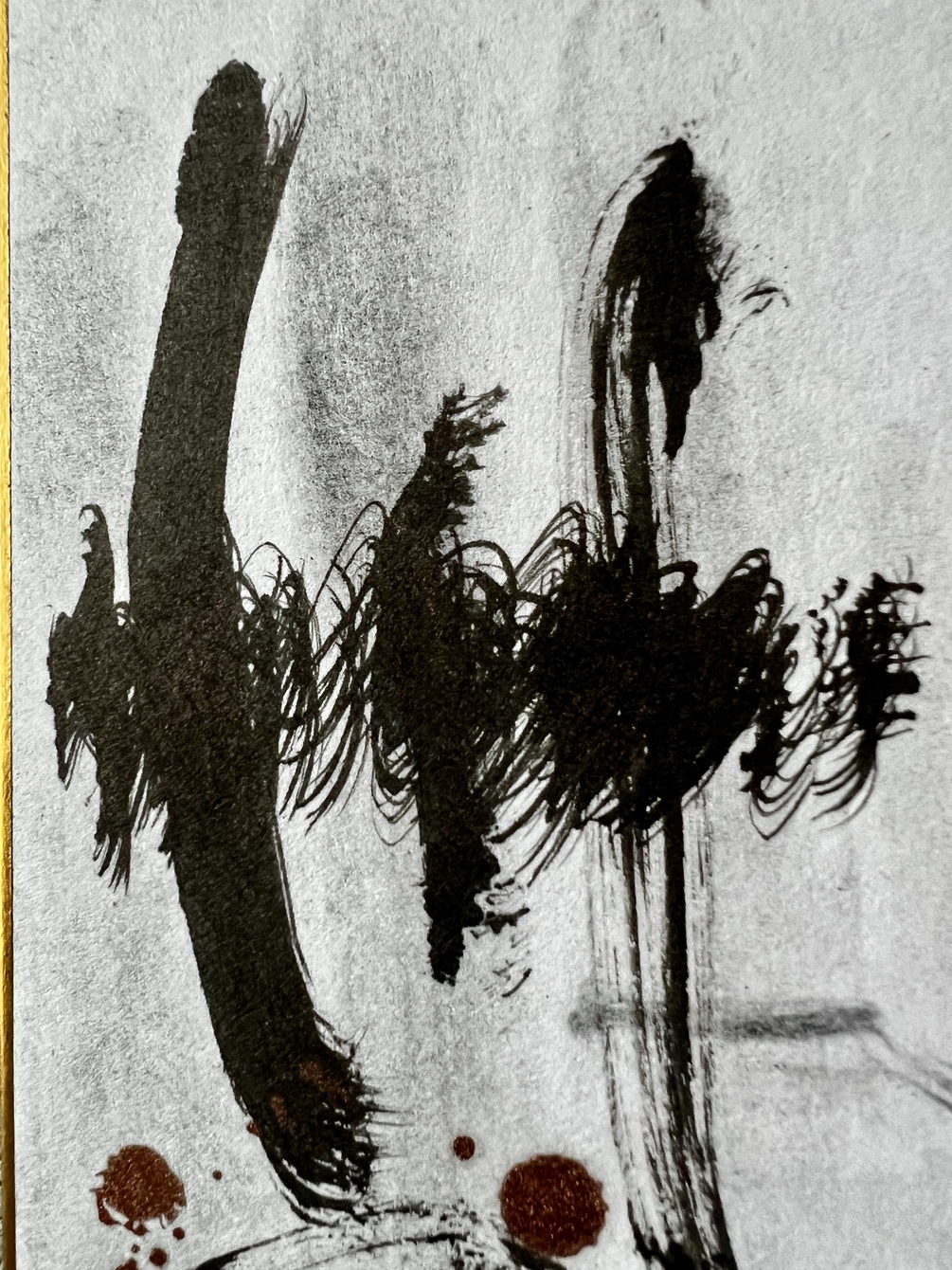 Japanese sumi ink mixed with bronze ink. Fusain charcoal.